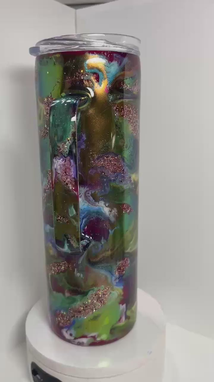 #259 - 20oz Skinny Tumbler with Handle - Ink Swirl with Glitter