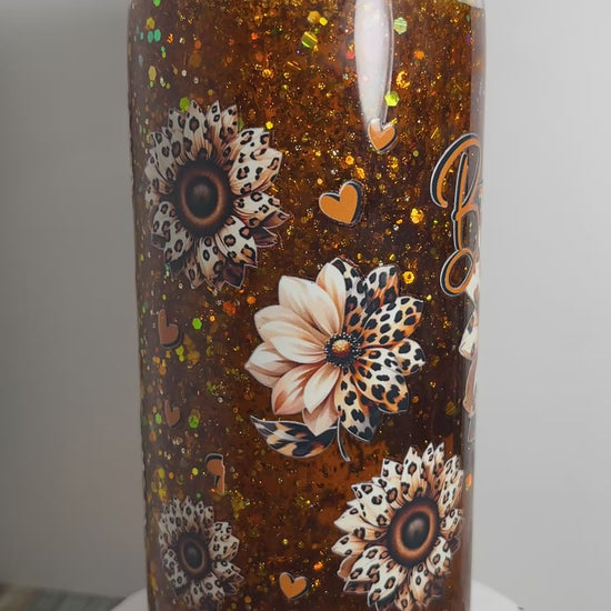 #SG020 - 20oz Snowglobe Acrylic Tumbler / Western Theme / Medium Flow / Decals: Leopard Daisy Flowers with Text: “Be The Best Version Of You”