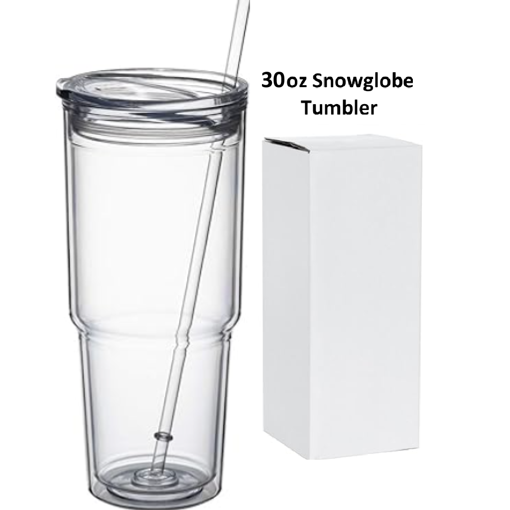 All Snowglobe Acrylic Tumblers feature a durable double-walled, premium food-grade acrylic construction that resists breaks and leaks. Their permanently secured plug ensures a safe, BPA-free drinking experience, blending safety with everyday functionality making them a practical and reliable choice for daily use. Each Snowglobe includes a clear lid, straw, and box.