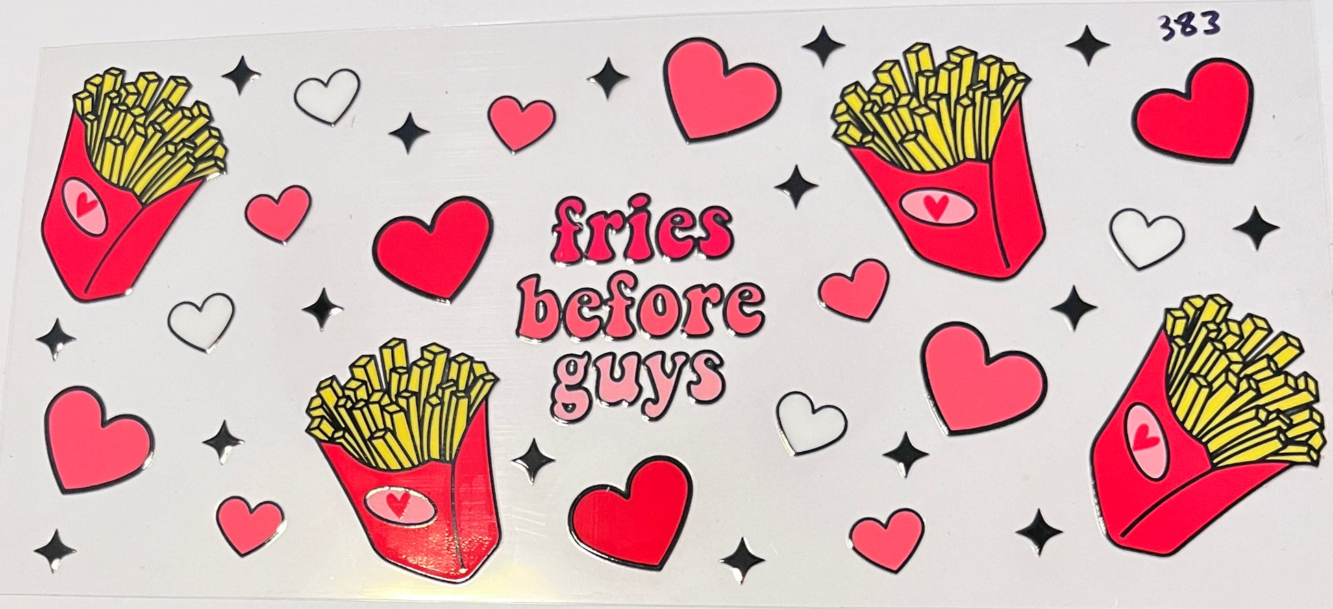 9.5 x 4.5 / Can use on most tumblers and snowglobes. This UVDTF is clear.