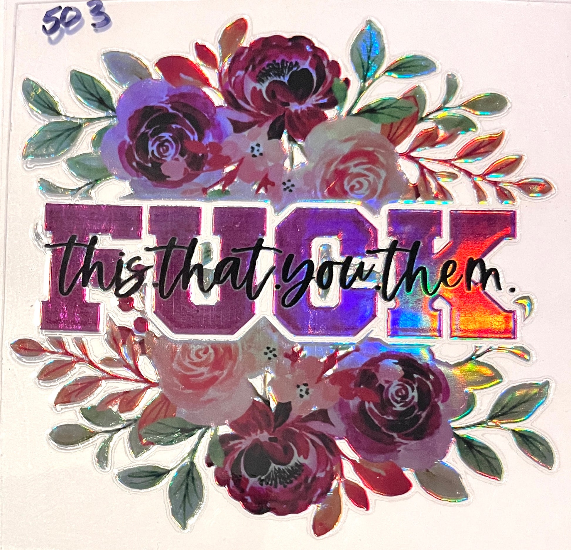 Holographic. 4” X 4” / Can use on most tumblers and snowglobes. This UVDTF is clear.